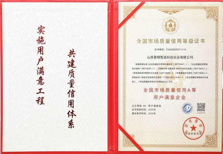 全國市場質(zhì)量信用A等用戶滿意企業(yè)