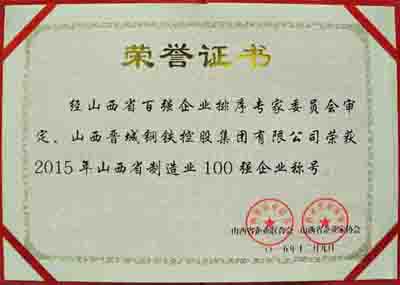 2015年山西省制造業(yè)100強(qiáng)第10名