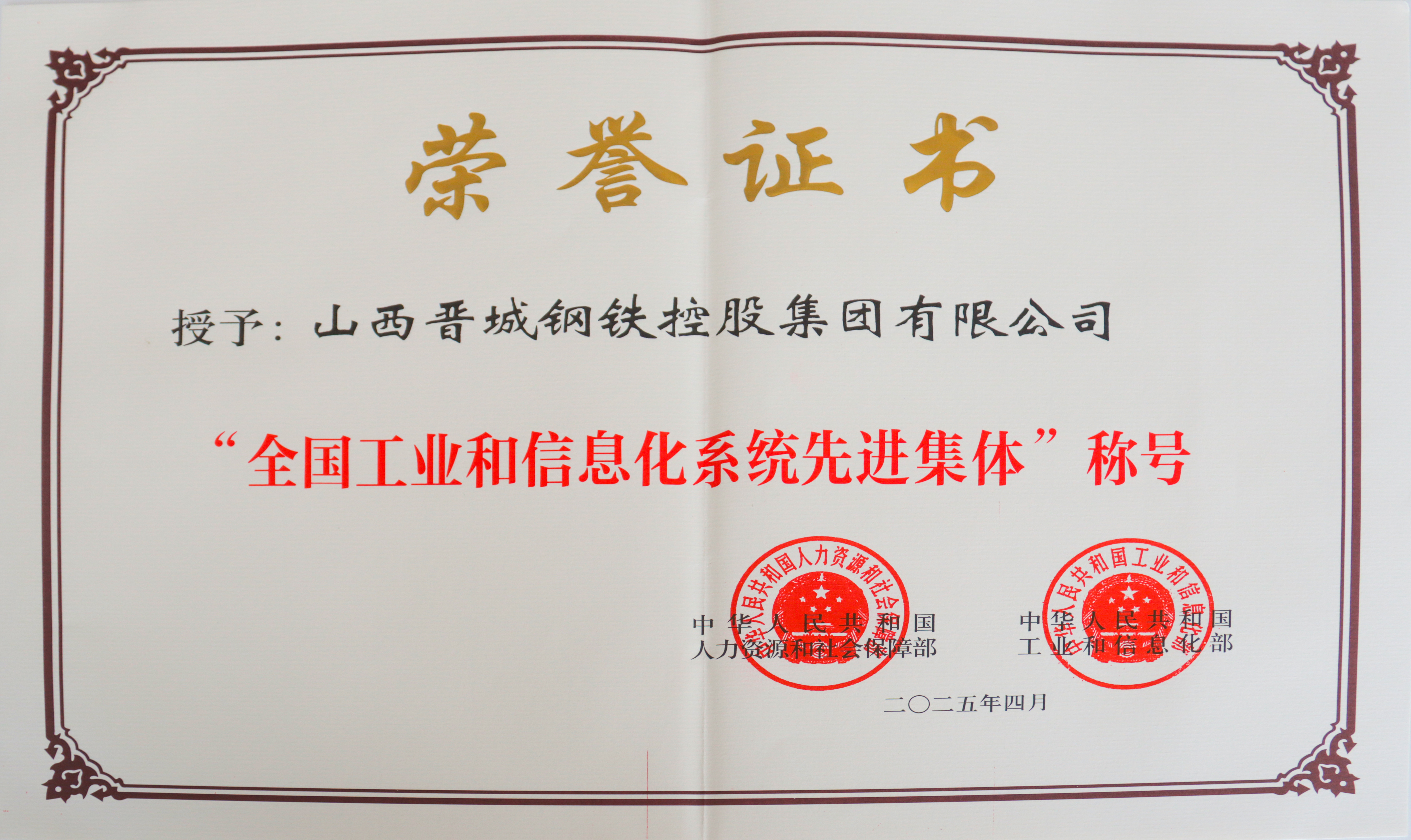 全國工業(yè)和信息化系統(tǒng)先進(jìn)集體證書