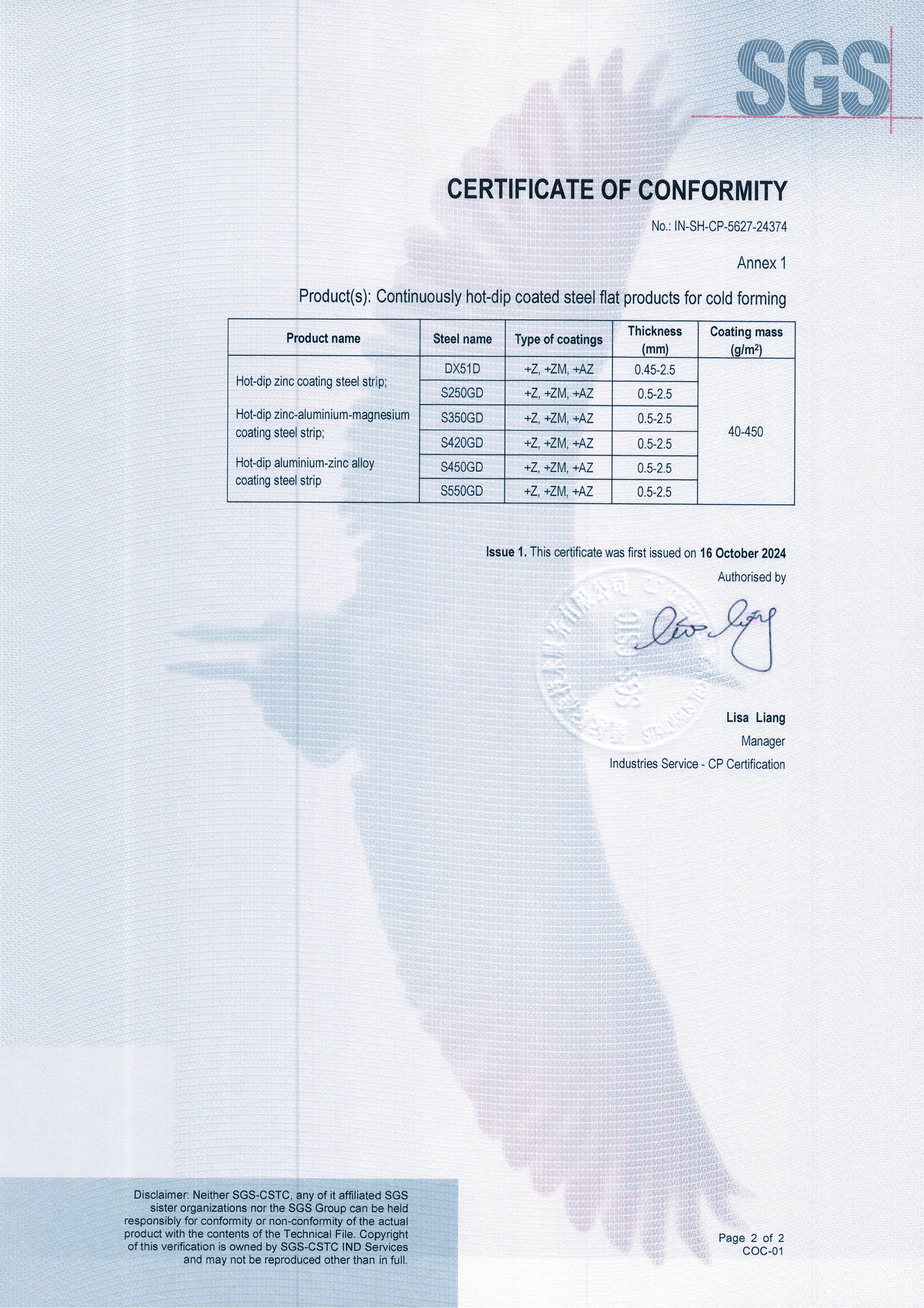 永碩EN 10346歐標(biāo)熱鍍標(biāo)準(zhǔn)SGS認(rèn)證(第二頁)