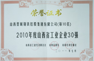 山西省工業(yè)企業(yè)30強(qiáng)第10名