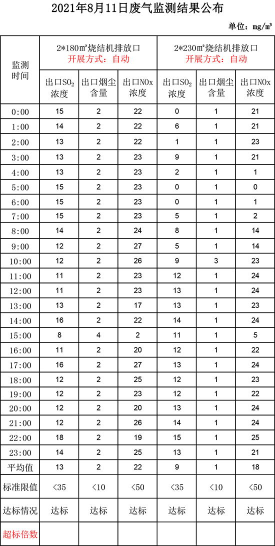 8月11日晉鋼集團廢氣監(jiān)測結(jié)果公布