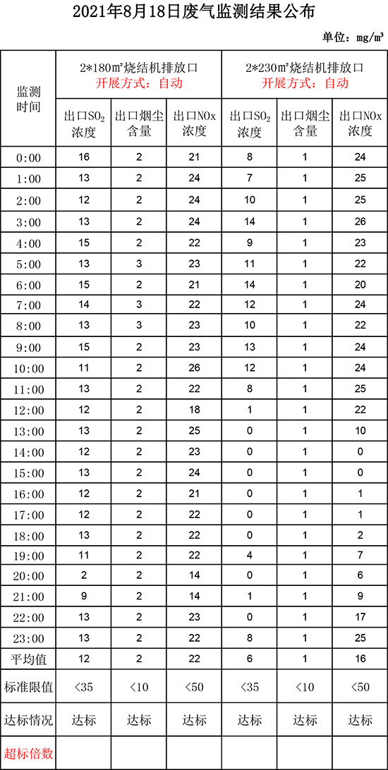 8月18日晉鋼集團(tuán)廢氣監(jiān)測(cè)結(jié)果公布