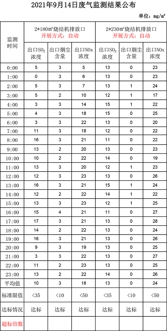 9月14日晉鋼集團(tuán)廢氣監(jiān)測(cè)結(jié)果公布