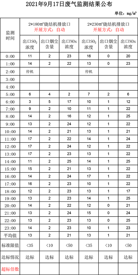 9月17日晉鋼集團(tuán)廢氣監(jiān)測結(jié)果公布