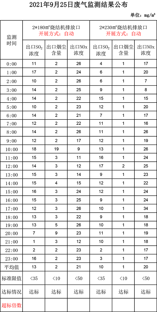 9月25日晉鋼集團(tuán)廢氣監(jiān)測(cè)結(jié)果公布