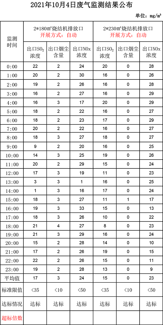 10月4日晉鋼集團(tuán)廢氣監(jiān)測(cè)結(jié)果公布