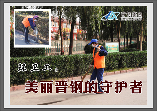 環(huán)衛(wèi)工——這個普普通通的群體,擔負著集團公司環(huán)境清潔和美化工作,被人們親切地成為公司形象的“美容師”。不論春夏秋冬,不畏嚴寒酷暑,他們風(fēng)雨無阻,辛勤工作,為了公司的干凈整潔,默默無聞的奉獻著。是他(她)們,用勤勞的雙手和特有的“畫筆”描繪了晉鋼美麗的風(fēng)景。