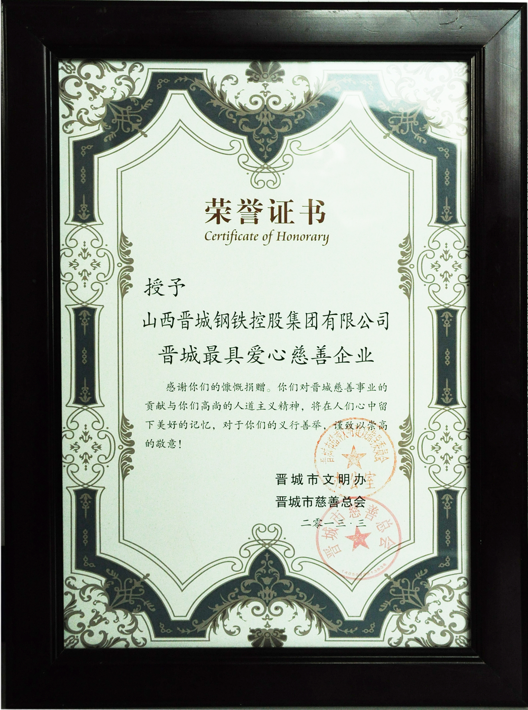 集團(tuán)公司獲“晉城最具愛心慈善企業(yè)”